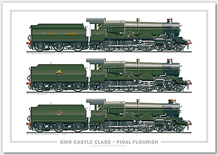 Another three multi-image prints have been released. These cover various members of the Great Western Castle class, including one print which shows the members of the class named after Great Western engineers.